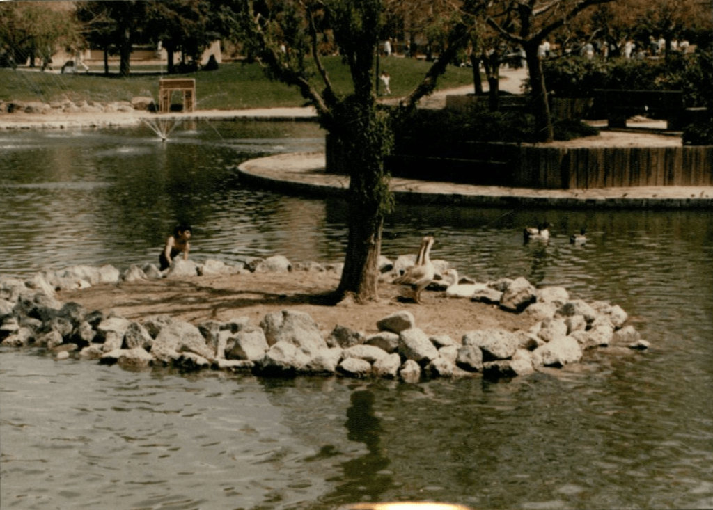 An island within the duck pond with a tree on it that no longer exist in the present.