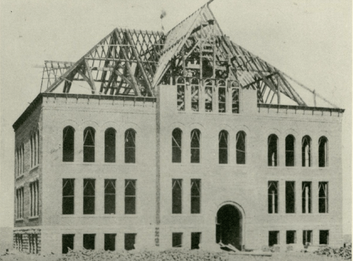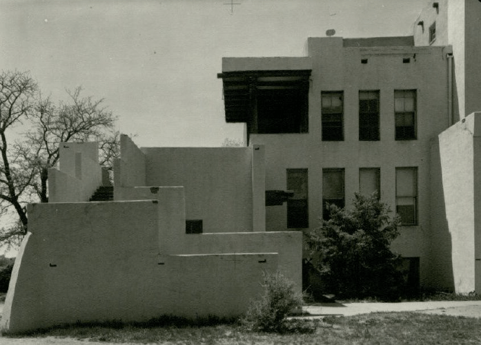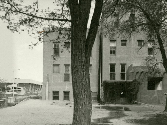In 1906 the decision to have the building remodeled, which was called the Administration Building at the time, was essential due the original roof design having poor structural integrity and was foreseen to be problematic in the future. This gave way for the opportunity to have the building suit the traditional Pueblo culture style. In 1908, a massive remodel was underway to change the building’s red bric–k Victorian appearance. The pitched roof was removed, stucco concealed the salmon colored brick and large vigas supported the entry way. An additional room, Rodney Hall, was constructed, and the project was completed in 1909 for a total of $17,309.