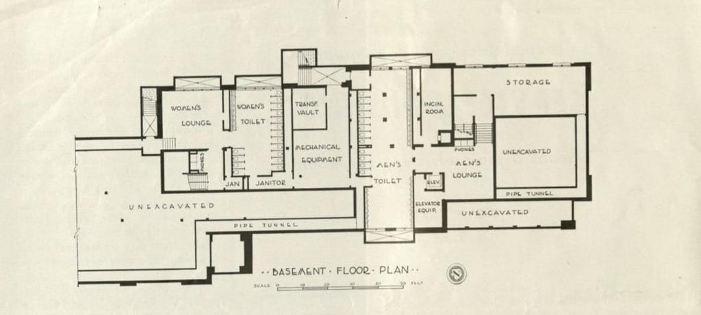 Basement floor plans which housed the bathrooms and mechanical equipment