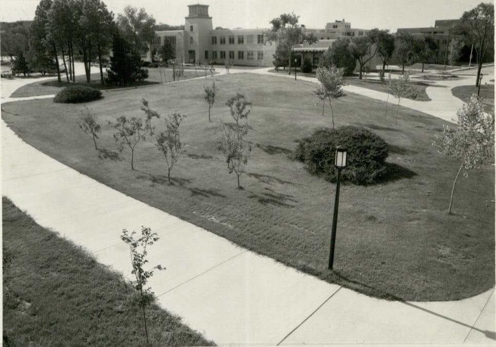 Mitchell Hall in 1951. Here you can see many newly trees that have been planted right out side and all around the newly built Mitchell Hall