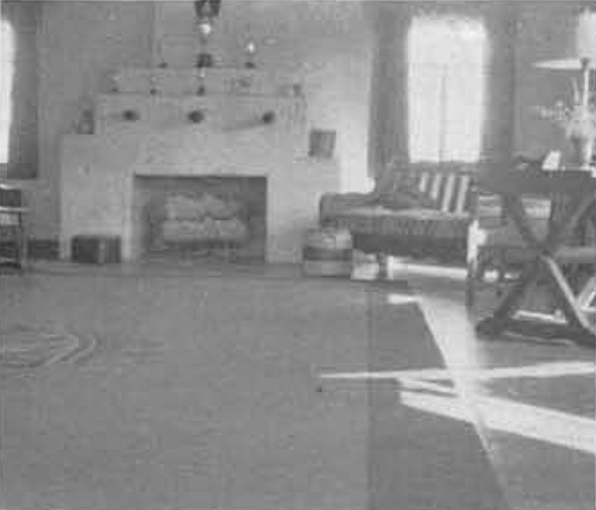 The agreement for the construction of the Alpha Chi Omega sorority house was made on April 19th, 1930, between the “ALPHA CHI OMEGA BUILDING ASSOCIATION OF NEW MEXICO” and architect Beula Fleming.19 The house was finished sometime in late December of that year or in early January 1931.20 It was outfitted with a three-tier fireplace, a grand piano, and other amenities. The initial sketches for the building differed from the final layout; the living room originally protruded out more from the rest of the house, with a fireplace nestled in its bottom left corner instead of against the right wall, and a conservatory room adjacent to it was dropped entirely. The dining room and kitchen were also made flush with the reoriented living room. Additionally, the original plan called for a porch on the exterior facing west; this did not come to fruition, with one instead being built along the walkway to the entryway door.