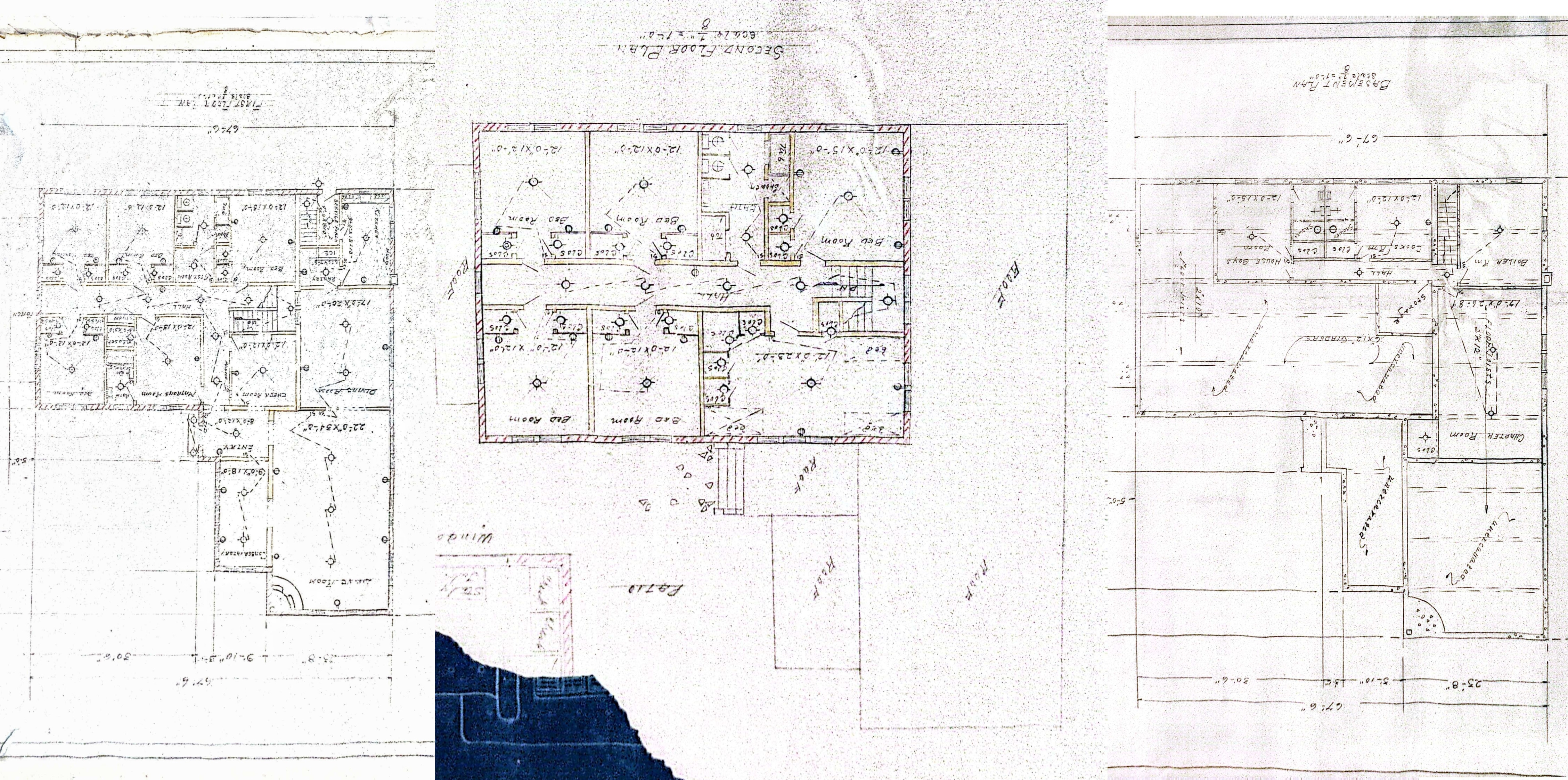 All 3 floors of 1717 Roma as drawn out by Louis G. Hesselden, reflecting the final overall design of Beula’s work as well as his newly planned additions and changes.27