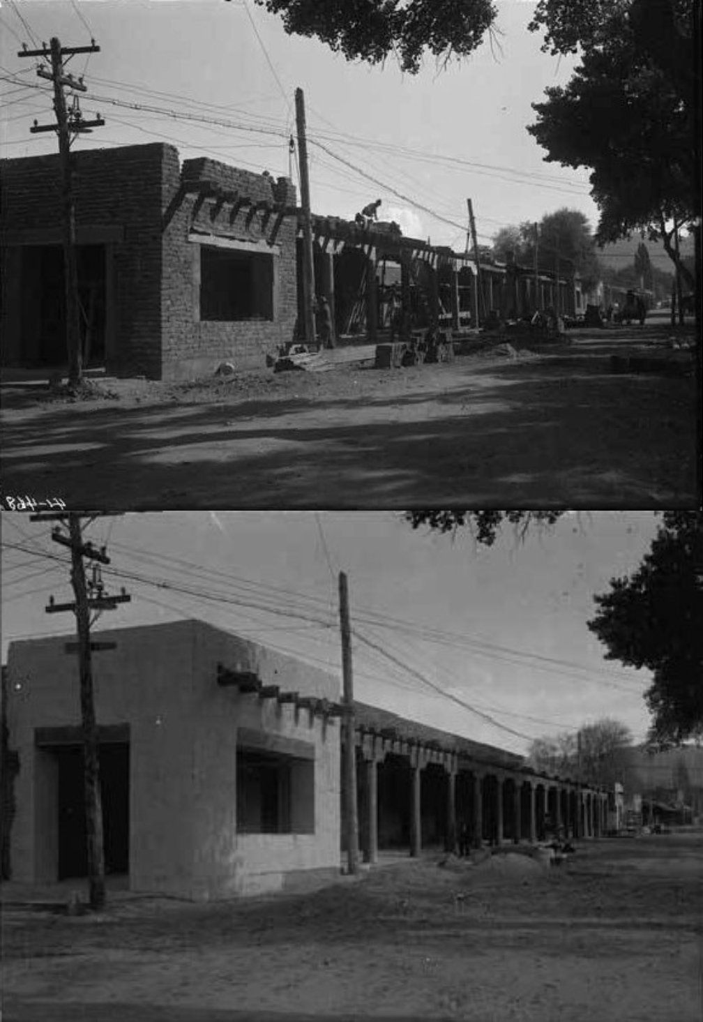 The Palace of the Governors in two stages of remodeling in 1913, the year El Palacio Press, the progenitor to the UNM Press, began to release its eponymous magazine.89