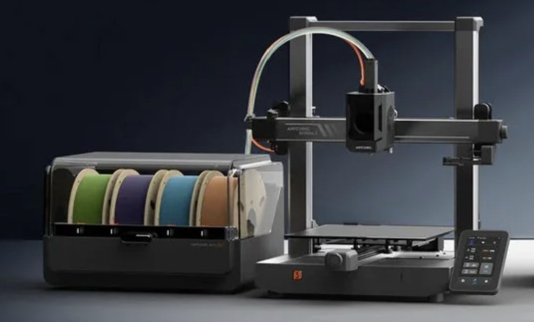 The Amaranth studio has an AnyCubic Kobra 3 with a four-spool materials station. This allows for using four different filaments for a single 3D print.